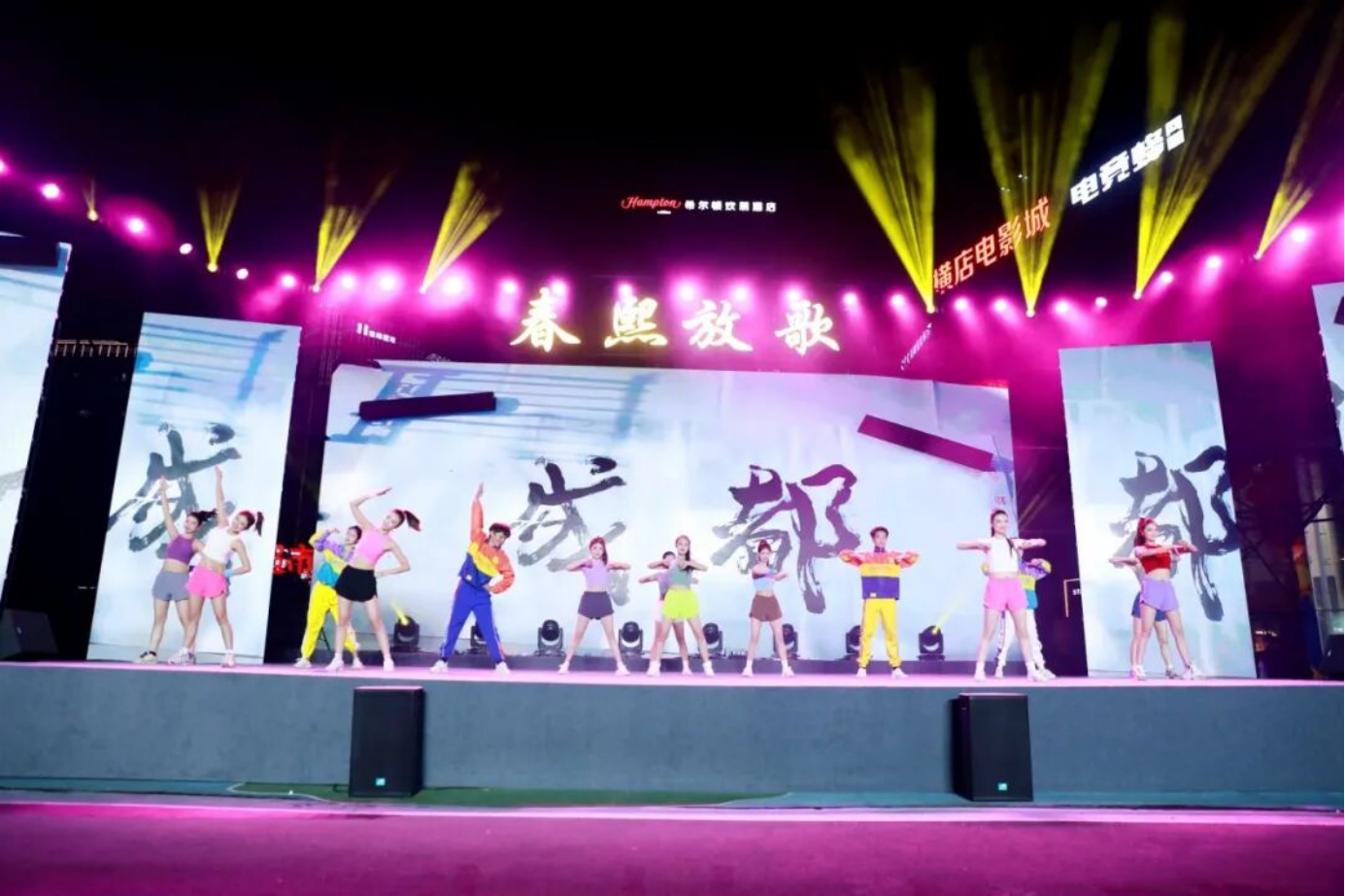 在第一篇章《锦江风华・古韵新声》中,现代舞《你好,成都》用热情活力点燃现场气氛,舞者们将街舞与流行舞元素巧妙融合,灵动的舞姿搭配绚丽灯光,展现出锦江青年的朝气与城市的时尚魅力。